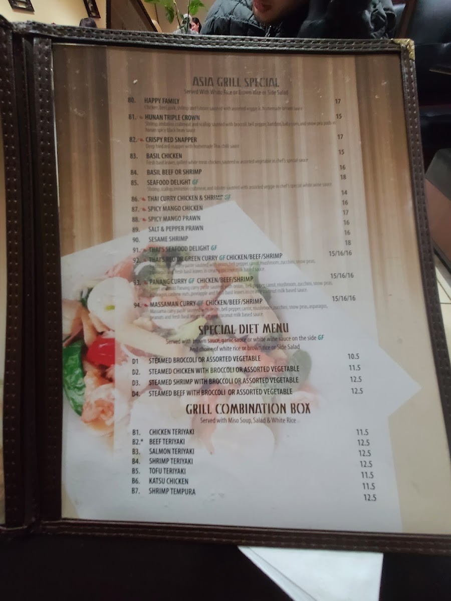 Gluten free, hot. Traditional thai curry paste sautéed with onion, bell pepper, carrot, mushroom, zucchini, snow peas, asparagus and fresh basil leaves in creamy coconut milk based sauce